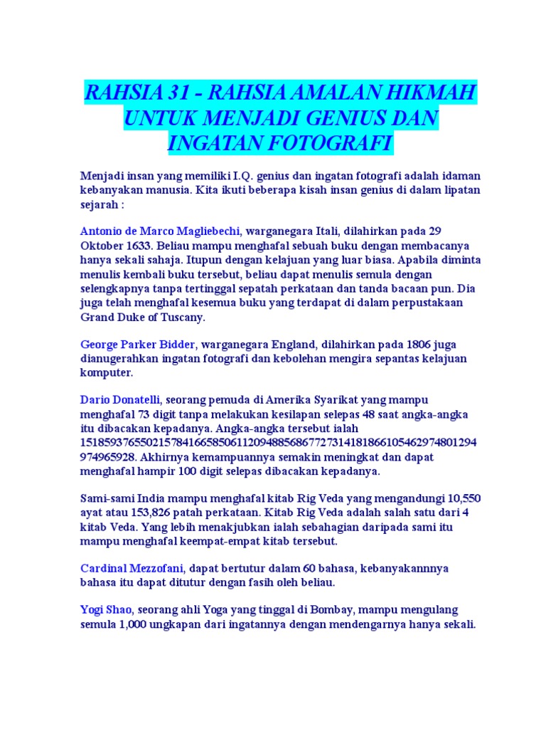 Amalan agar otak cerdas dan kuat hafalan. Amalan agar otak cerdas dan kuat hafalan. Amalan agar otak cerdas dan kuat hafalan tidak mudah lupa setiap manusia pasti mendambakan memiliki kecerdasan baik itu yang masih muda sudah tua laki laki dan perempuan. Ada yang memang pintar dan ada yang memang bodoh.