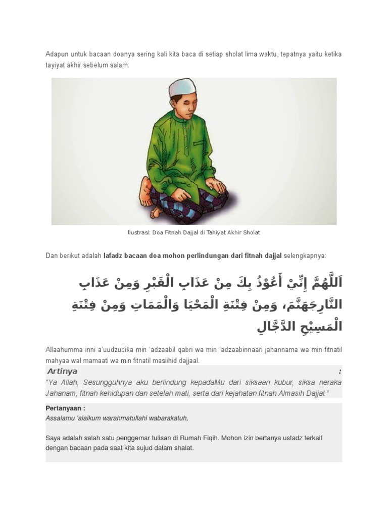 Doa Fitnah Dajjal Tahiyat Akhir Blog Pendidikan