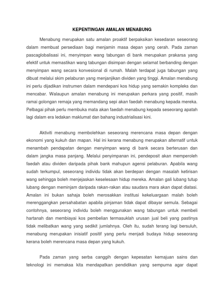 Hal ini terbukti berdasarkan peristiwa penuh. Blog contoh karangan amalan menabung. Hal ini kerana wang yang disimpan di bank akan dibayar faedah manakala saham akan dibayar dividen.