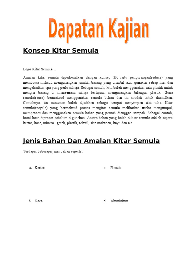 Topik yang akam dipelajari oleh murid tingkatan 3. Menyenaraikan jenis jenis bahan dan amalan kitar semula menghuraikan kepentingan amalan kitar semula membincangkan masalah masalah atau halangan dalam amalan kitar semula mencadangka langkah langkah utuk mengatasi masalah dalam amalan kitar semula menerapkan nilai dan unsur patriotisme dalam dapatan kajian. Alhamdulillah rata rata pembaca setia mypt3 sedang bertungkus lumus menyiapkan kerja kursus sejarah pt3 2019 hampir kesemuanya telah memulakan ada yang telah siap malah ada yang hantar awal kepada guru masing masing.