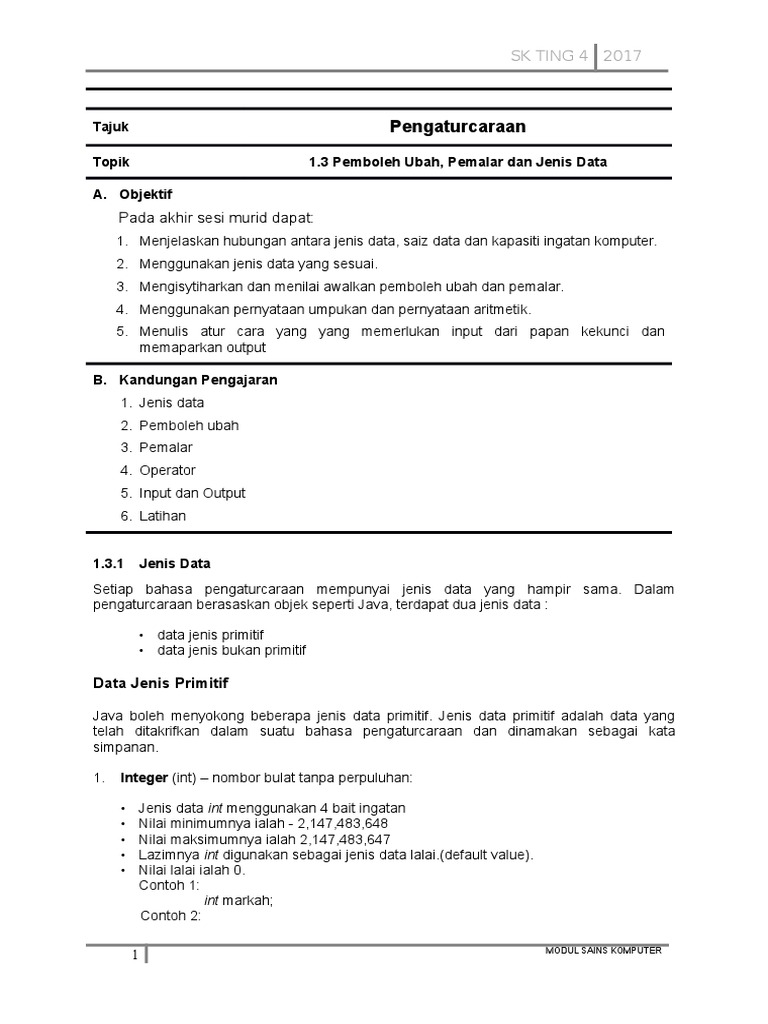 Sains Komputer T4 Pemboleh Ubah Pemalar Dan Jenis Data