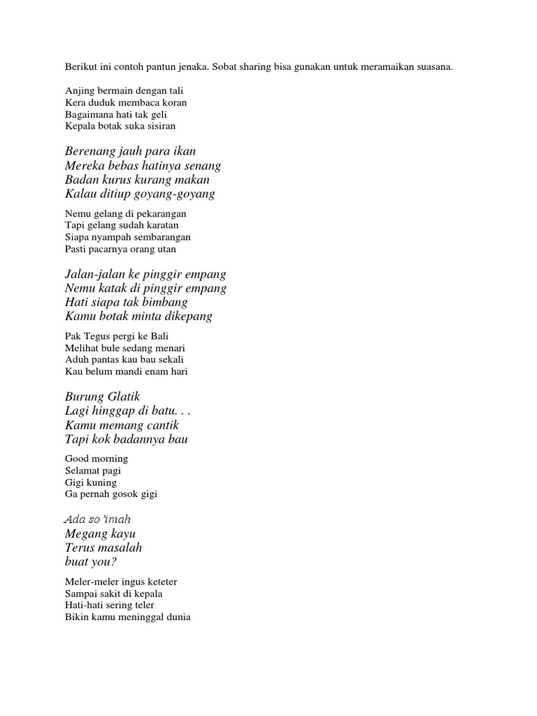 10 Contoh Pantun Jenaka Lucu Serta Pembahasannya Pinterkelas