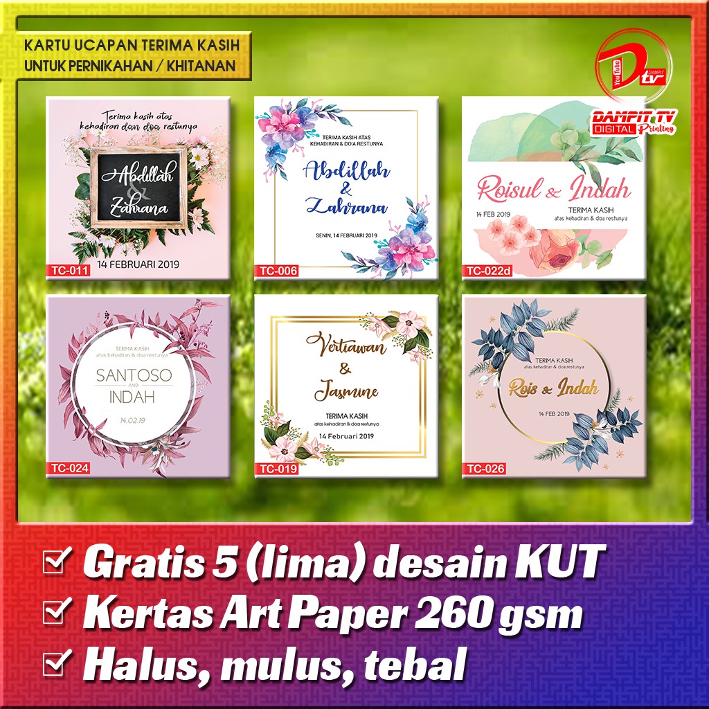 Grosir Kartu Ucapan Terima Kasih Free 5 Desain Lubang Kut Kartu Souvenir Pernikahan Custom Shopee Indonesia