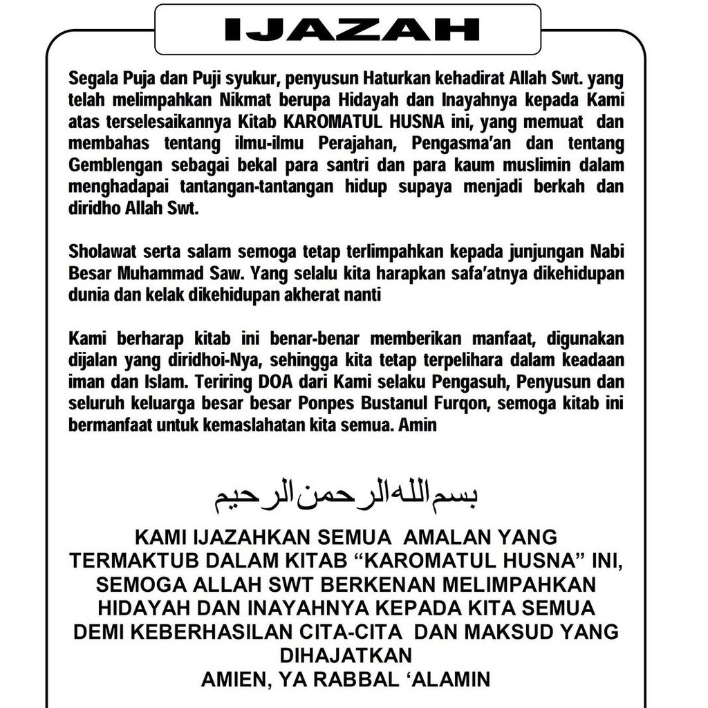 Ijazah Kubro Ilmu Hikmah Kitab Karomatul Husna Tgkt Guru Sepuh Shopee Indonesia