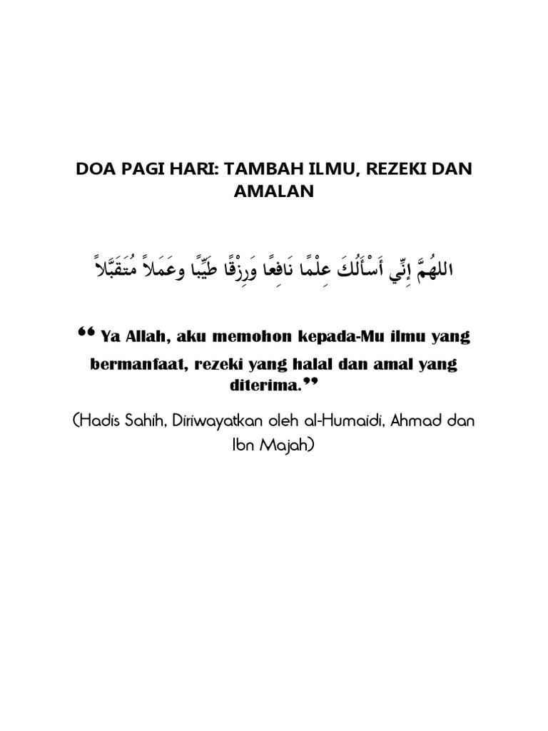 Amalan doa pagi hari. Amalan doa pagi hari yang dibaca rasulullah saw dan doa hari sabtu berilah kami rizki yang halal. Arab latin arti dan maknanya sekolah 0 doa pagi hari menurut imam nawawi berbunyi allahumma bika ashbahna wa bika amsaina wa bika nahya wa bika namutu wa ilaikan nusyuru dan menurut pendapat ulama dan kitab yang lain akan dijelaskan lebih lengkap dalam artikel ini. Mohon ilmu rezeki dan amal yang diterima.