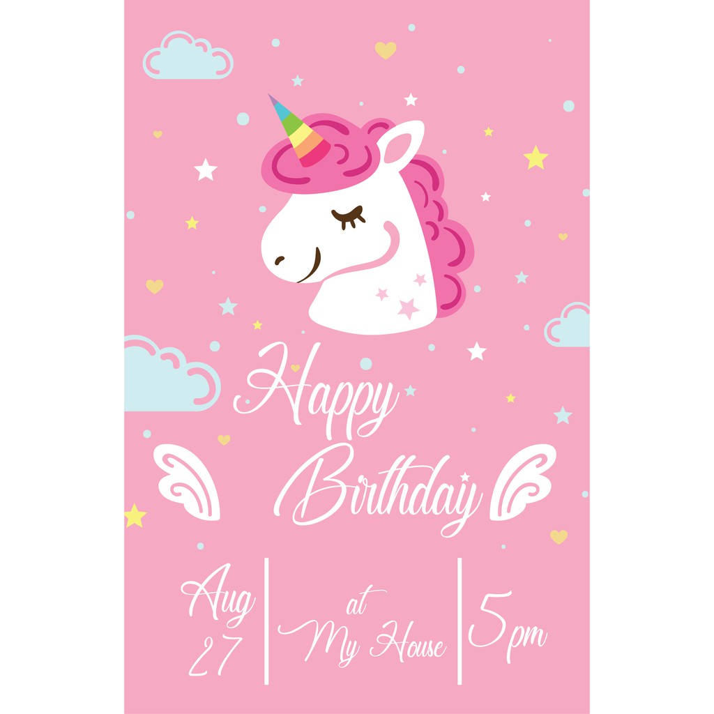 Undangan Ulang Tahun Polos Tema Unicorn Shopee Indonesia