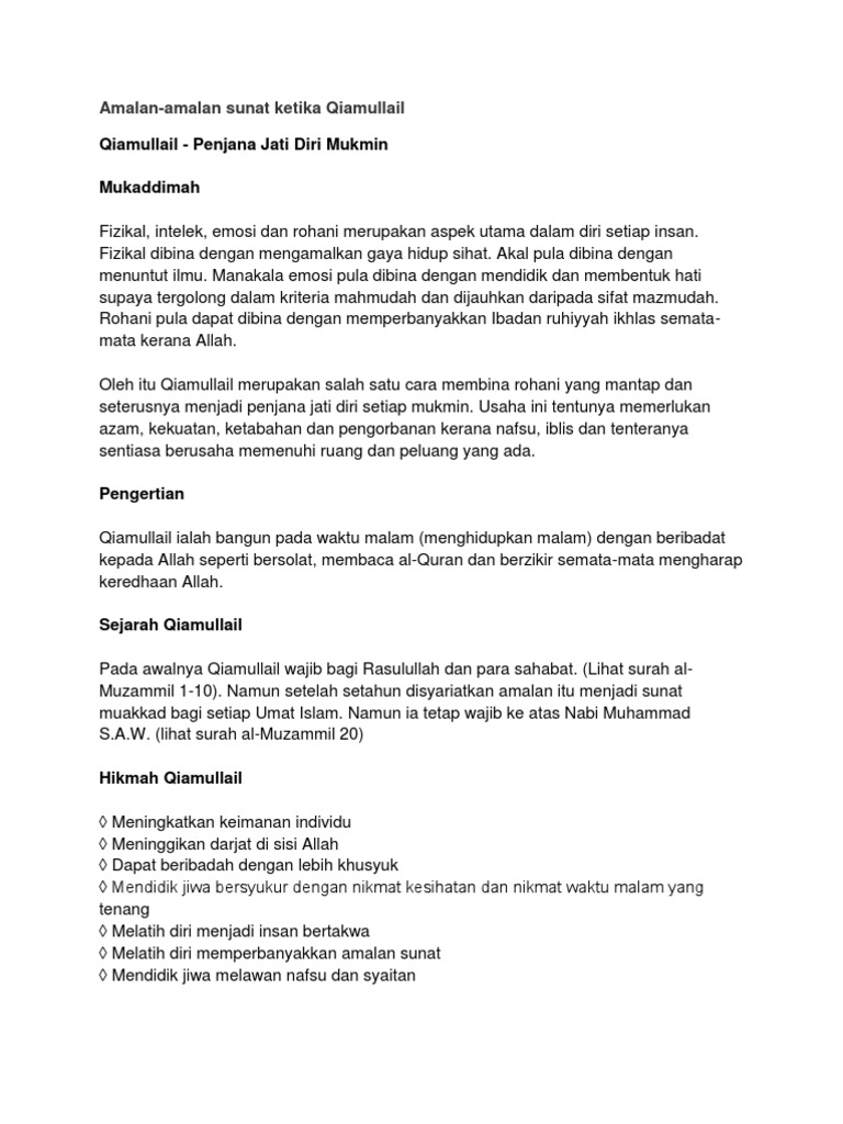 Amalan Qiamullail By Jamil Tajuddin Al Jarumi