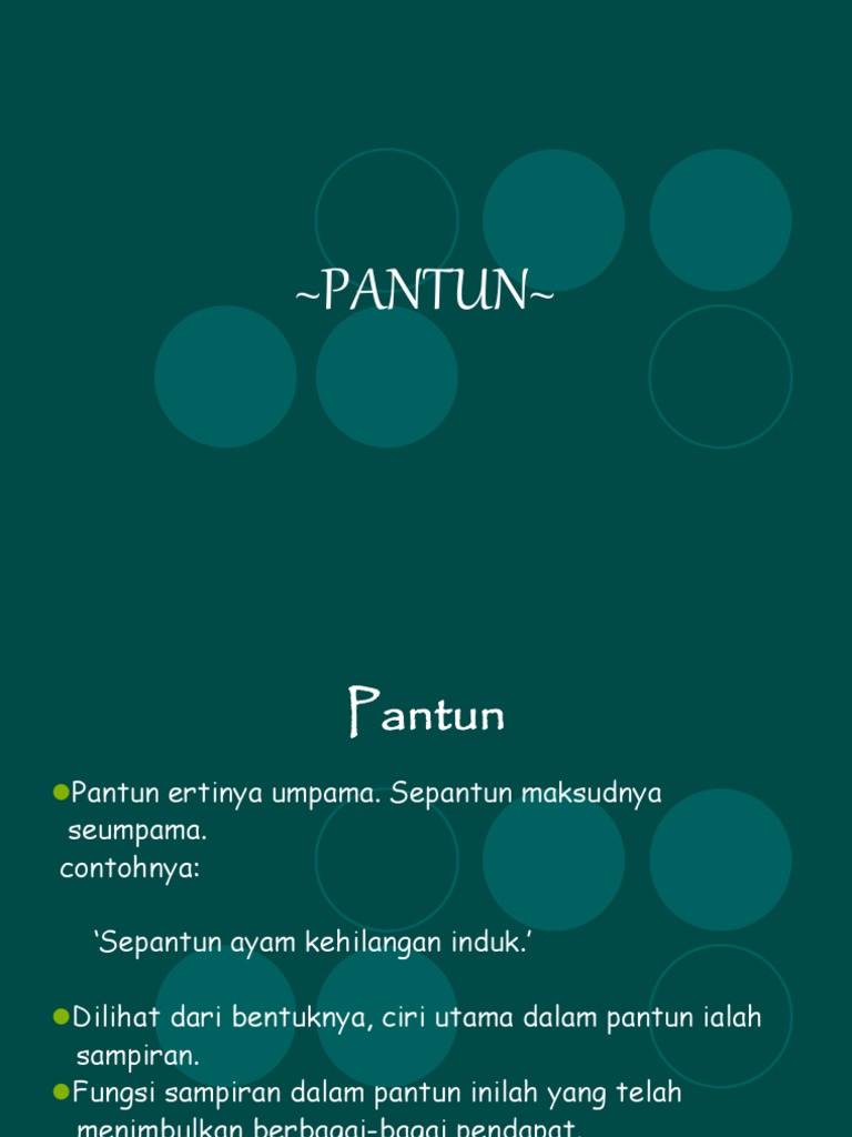 Pantun adalah susunan kalimat yang terdiri dari 4 baris yang bersajak silang a b a b atau aaaa. Kiasan pada dasarnya memiliki makna sama dengan perumpamaan atau pengibaratan seperti. Pantun kiasan banyak terdapat pada pantun melayu.