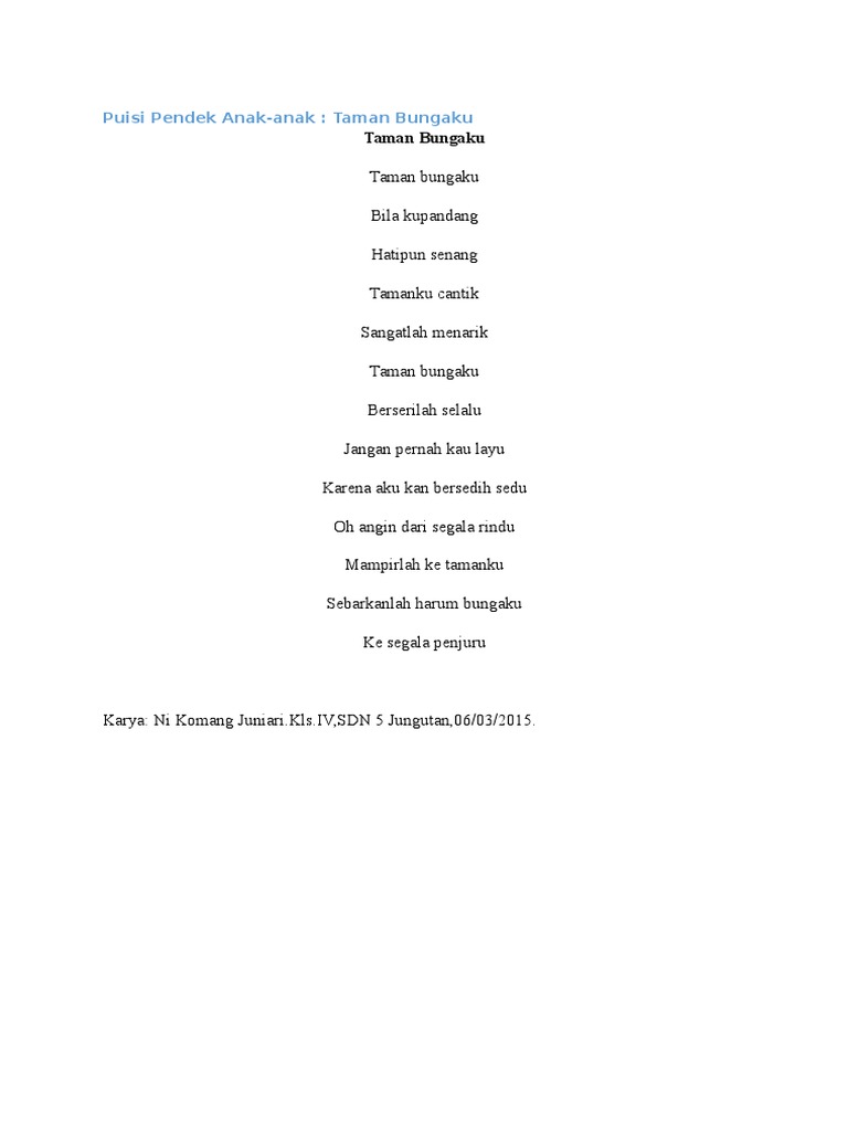 Kumpulan puisi pendek anak anak sekolah tk dan sd terbaru tugas membuat puisi tak lepas dari tugas dari sekolah anak anak tk dan sekolah dasar sd. Kami satu kelas sejak duduk di bangku kelas 1 sd.