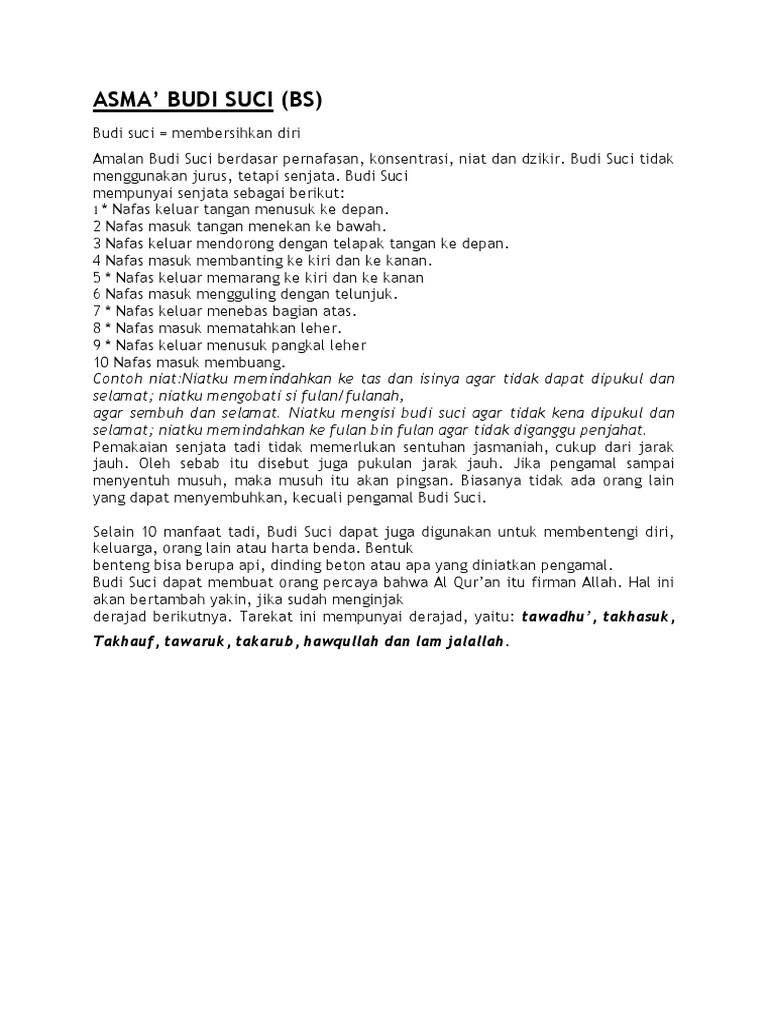 Budi suci tidak dapat dipakai untuk demonstrasi. Silat budi suci nagari sejuta pesona kota painan seni beladiri ips bs ini adalah seni beladiri kebatinan dengan pengolahan pernapasan amalan amalan.