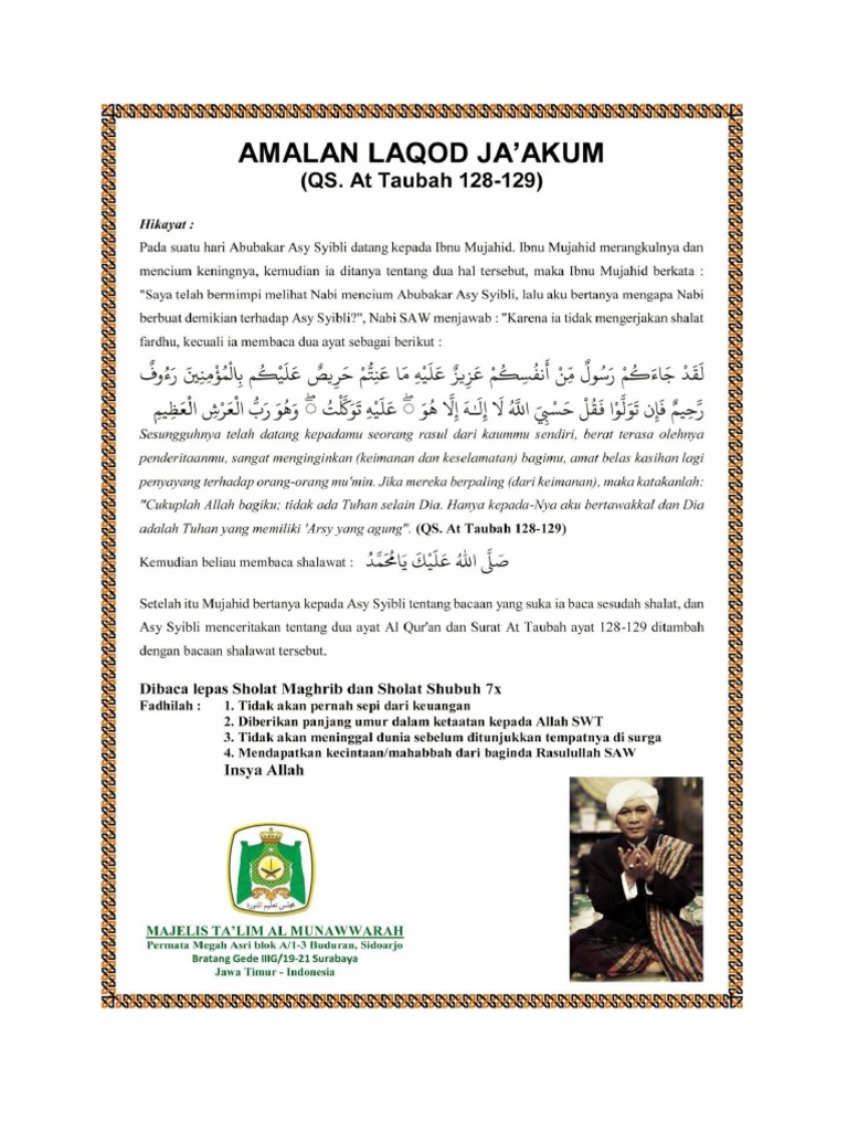 Doa Sholawat Dan Amalan Sunnah Rasulullah S A W Amalan Laqad Ja Akum Qs At Taubah 128 129