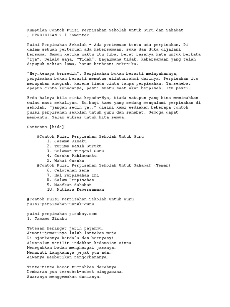 Contoh Puisi Perpisahan Guru Kumpulan Soal Pelajaran 9