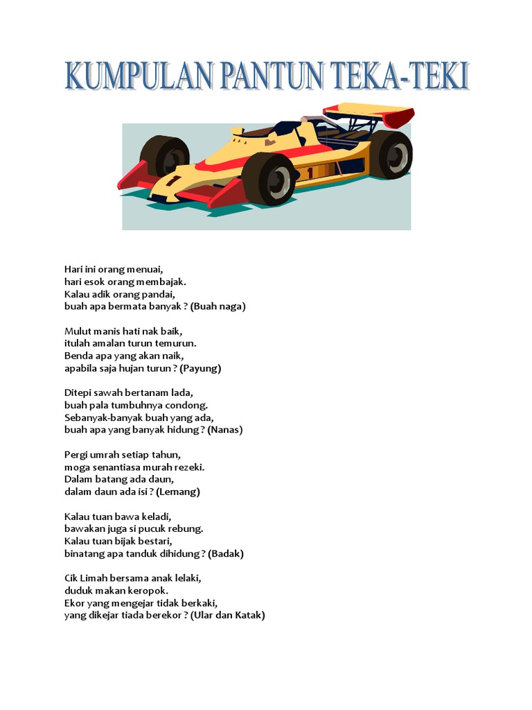 Pantun teka teki anak sd dan maknanya adalah informasi penting disertai dengan foto dan gambar hd yang bersumber dari semua situs web di dunia. Untuk kamu yang suka menyimak cerita yang panjang kamu juga bisa membaca cerita cinta romantis dan kisah nyata inspiratif di sini lho. Karena teka teki pada hakikatnya soal yang berupa.