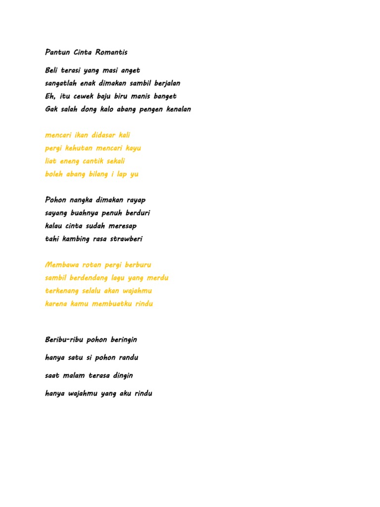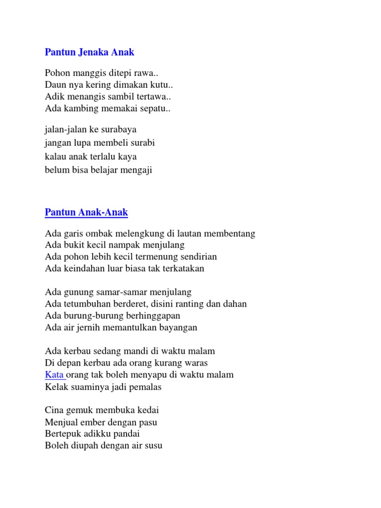 Hari ini masih kangen surangen sama kamu. Bahkan terdapat pantun lucu yang sering digunakan untuk menghibur seseorang maupun sesi adu pantun. Pantun ialah puisi melayu lama asli dari indonesia yang terdiri atas sampiran dan juga isi dengan rima a b a b.