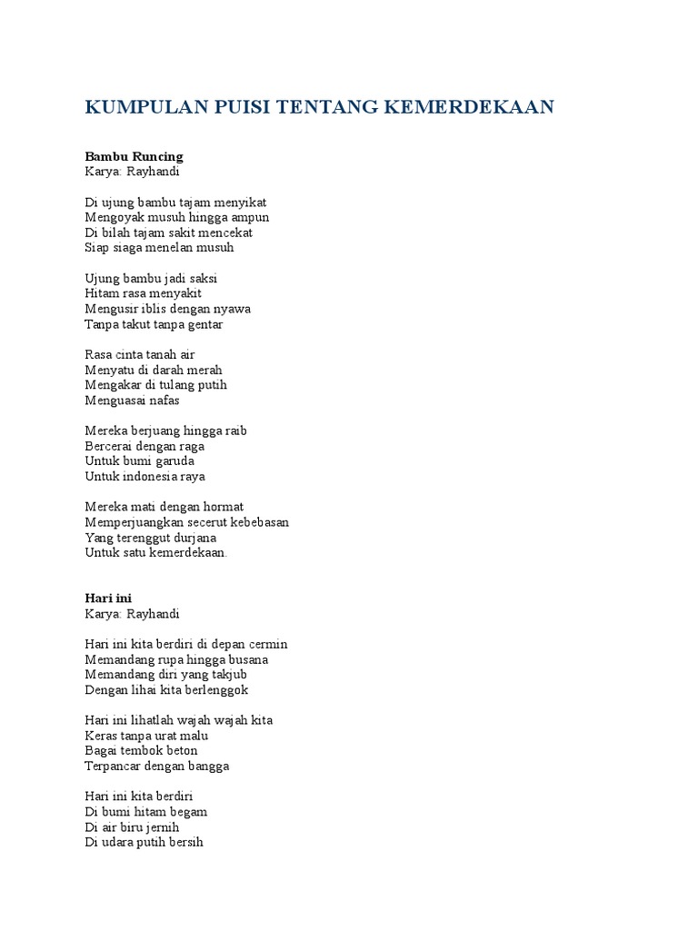 Dimana di dalam puisi tersebut memuat makna sendiri disetiap baris dan bait yang memadankannya sehingga menjadi satu dan kesatuan dalam bentuk tulisan yang sangat indah saat diungkapkan seorang penyair. Puisi pendek tantang cinta sontak setiap hendak menulis sajak sketsa wajahmu itu selalu saja merebak udara menjadi sesak penaku henti mendadak serangkaian. Berikut ini adalah beberapa contoh puisi sumpah pemuda.
