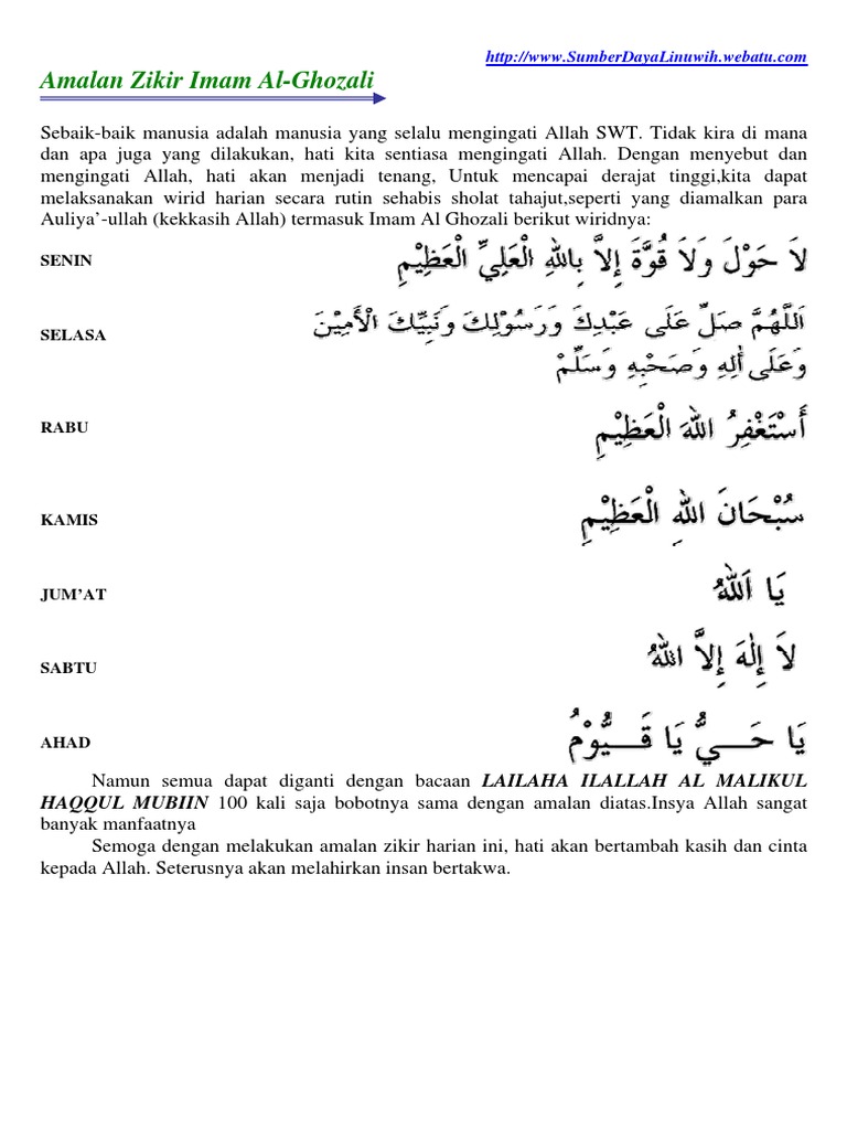 Zikir Harian Amalan Imam Al Ghazali Senangin Resort Training Centre Facebook
