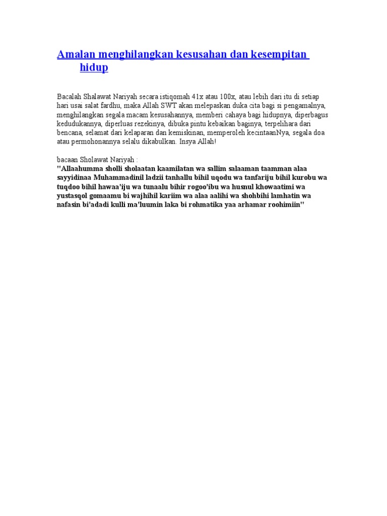 Amalan Menghilangkan Kesusahan Dan Kesempitan Hidup