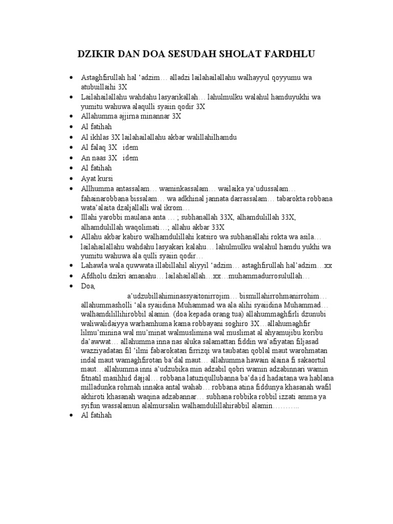 Dzikir Dan Doa Sesudah Sholat Fardhlu Doc
