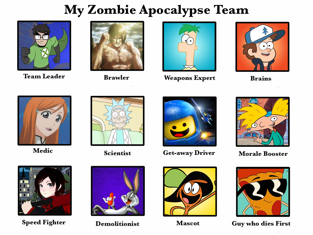 See more My Zombie Apocalypse Team images on Know Your Meme. Whe you read the comment section for this meme. Share your thoughts experiences and the tales behind the art.