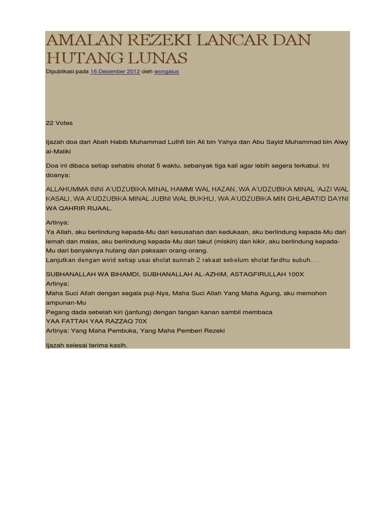 Amalan Rezeki Lancar Dan Hutang