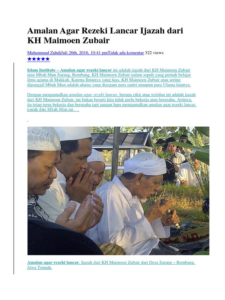 Amalan Agar Rezeki Lancar Ijazah Dari Kh Maimoen Zubair