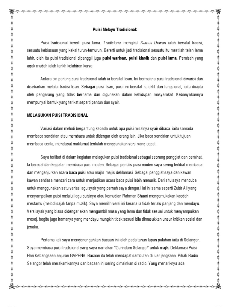 Ciri ciri pantun sendiri adalah adanya sampiran dan isi bersuku kata sebanyak 8 12 dan berpola sajak akhir a b a b atau a a a a. Pantun sendiri sebenarnya juga berasal dan berkembang di suku melayu sehingga sering terdapat kalimat asing.