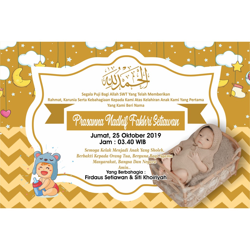 Alhamdulillah telah lahir dengan selamat putra kedua kami pada 12 mei 2019 pukul 12 30 wib yang diberi nama. Contoh desain kartu ucapan aqiqah pada acara tasyakuran atas kelahiran bayi umat nabi muhammad saw dianjurkan untuk melaksanakan aqiqah.