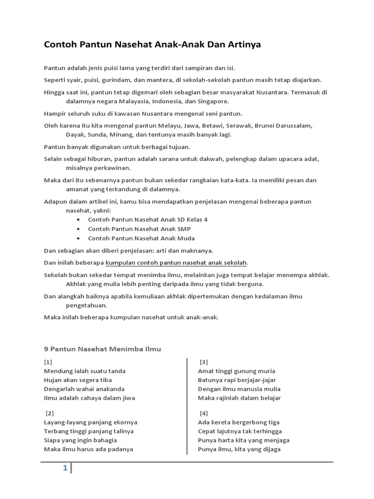 Sehari sehelai benang setahun menjadi kain. Namun bagaimana jika keadaan dompet tidak mendukung alias tak punya uang. 105 contoh pantun nasehat belajar pendidikan orang tua agama anak adab maknanya untuk pembahasan kali ini kami akan mengulas mengenai pantun nasehat yang dimana dalam hal ini meliputi.