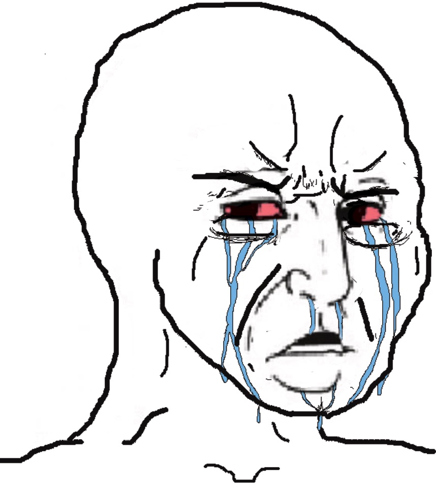 Wojak crying meme face. Frustrated Wojak also called Crying Wojak or more rarely Angry Wojak or Its Not Fair Wojak is a variation on the Wojak face driven to tears and clenching his teeth. Make Crying Wojak memes or upload your own images to make custom memes. Crying Wojak Meme Generator The Fastest Meme Generator on the Planet.