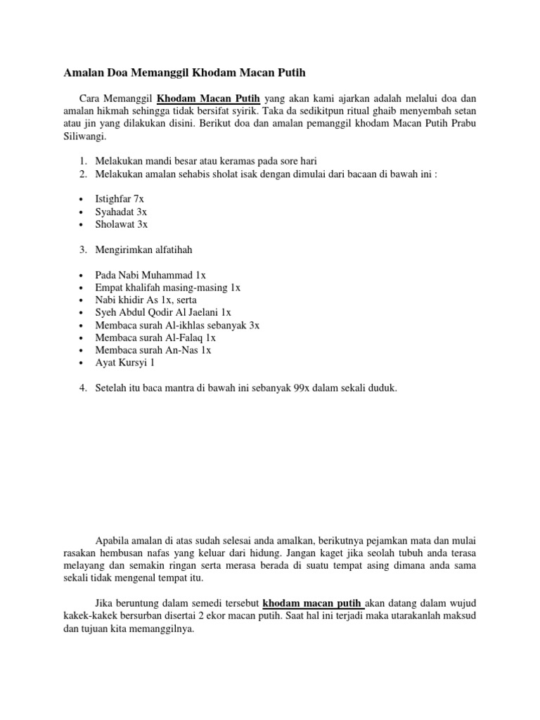 Cara Memanggil Khodam Macan Putih Mantra Bahasa Indonesia