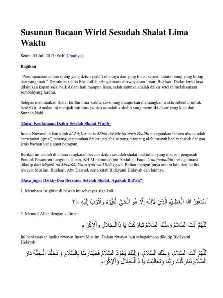 Susunan Bacaan Wirid Sesudah Shalat Lima Waktu Shalat Perilaku Dan Pengalaman Islam