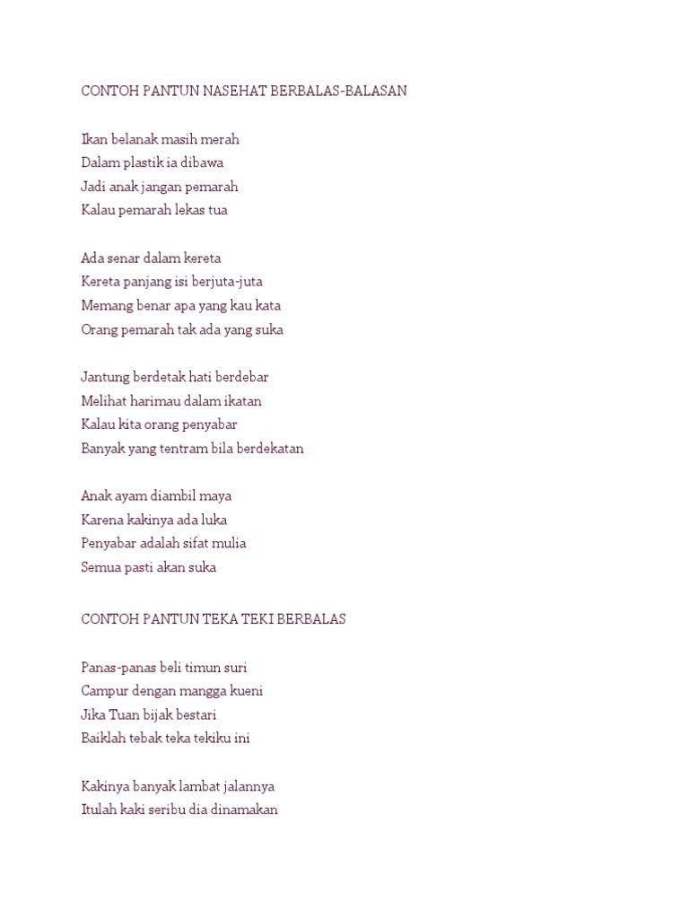 Contoh Pantun Nasehat Berbalas Docx