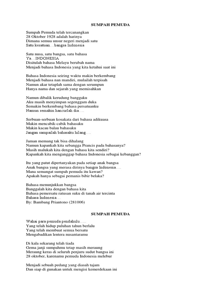 Kumpukanppuisi singkat sumpah pemuda atau puisi bertema sumpah pemuda bagaimana cerita puisi dan makna sumpah pemuda dalam. Contoh pidato sumpah pemuda dalam bahasa inggris beserta arti lengkap masyarakat indonesia pasti mengenal adanya sumpah pemuda bukan. Rekomendasi puisi untuk anda.