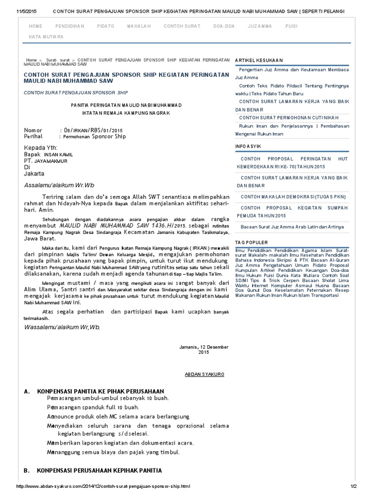Contoh Surat Pengajuan Sponsor Ship Kegiatan Peringatan Maulid Nabi Muhammad Saw Seperti Pelangi