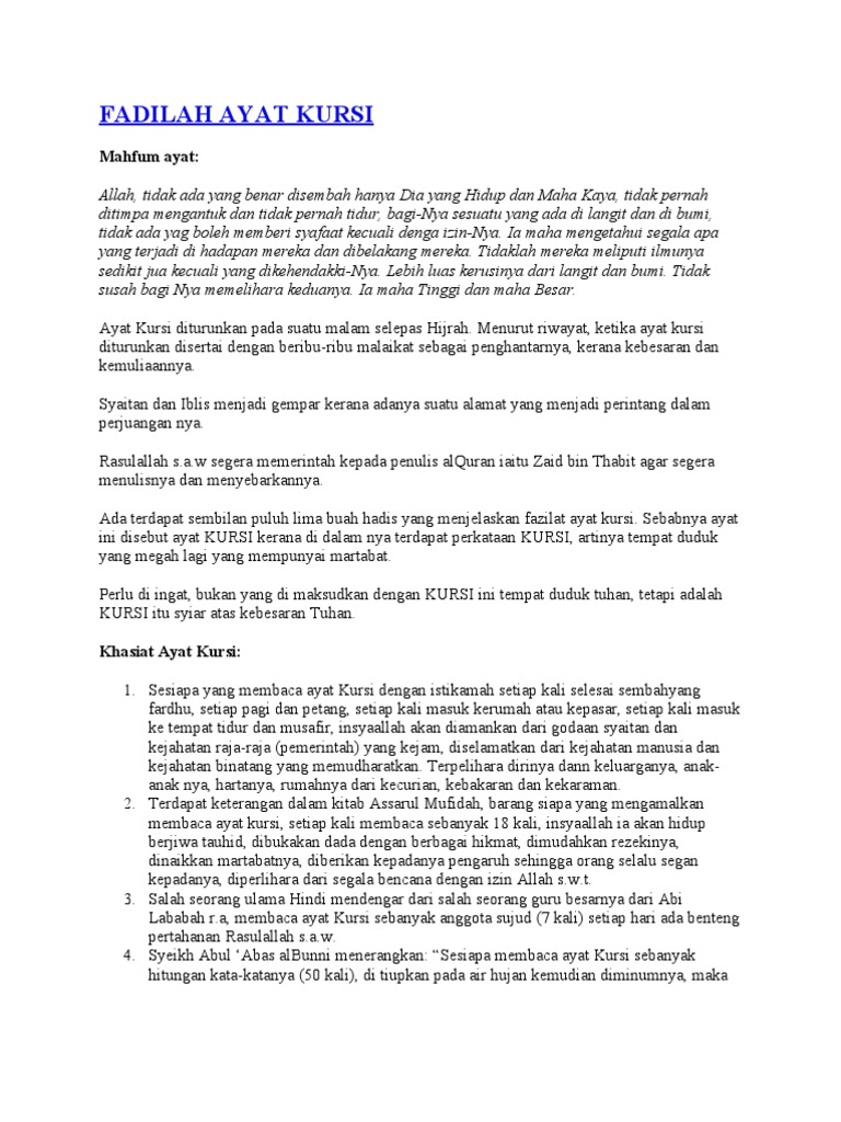 Bacaan Ayat Kursi Bahasa Indonesia Lengkap Dengan Arti Dan Manfaatnya