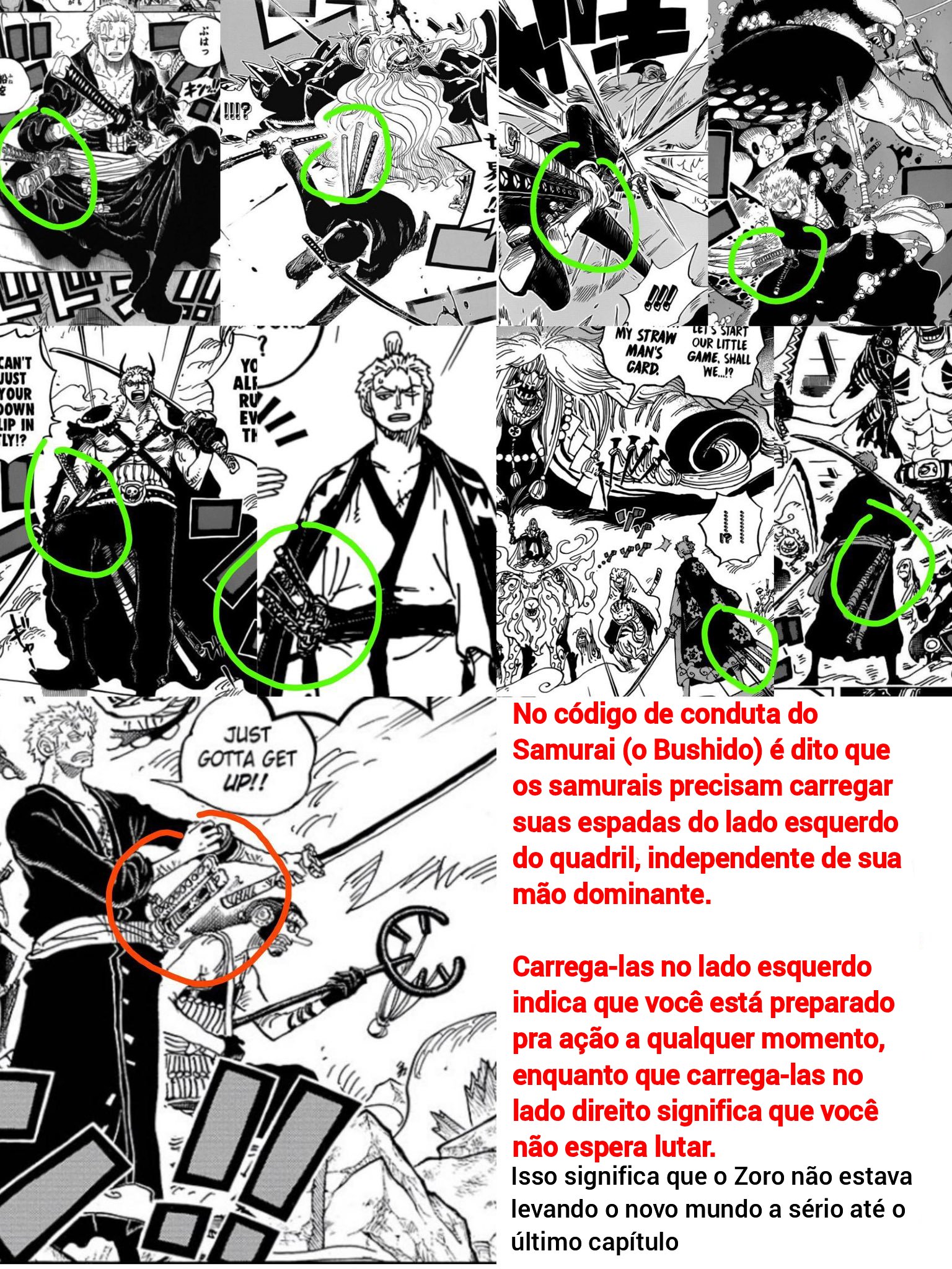 Zoro ahora lleva un abrigo largo abierto de color verde oscuro cerrado en su cintura por una faja roja en la que sus espadas están metidas y su bandana negra está atada alrededor de la manga izquierda. Espero que todos possam dar gargalhadas com estes memes de One Piece 4. Escucha la respuesta ho.