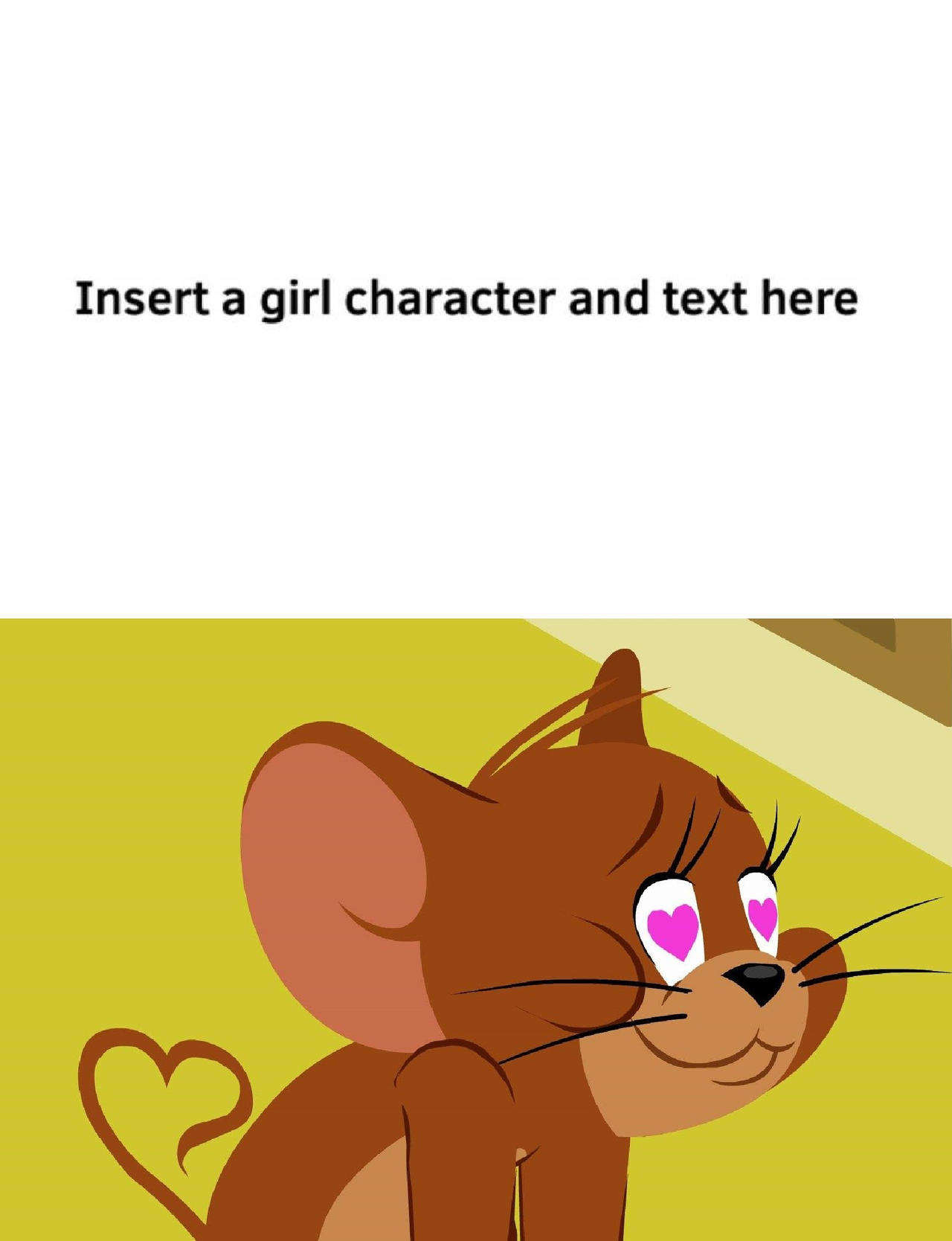 Jerry In Love Meme Generator The Fastest Meme Generator on the Planet. Laughing Tom Of Feline Bondage Tom on the Noose The Year of the Mouse Tom Smiling Love Me Love My Mouse Tom Crossing Arms Cat and Dupli-cat Body Slammer Jerry smiling Invasion of the Body Slammers Explanation of a Tom and Jerry meme.