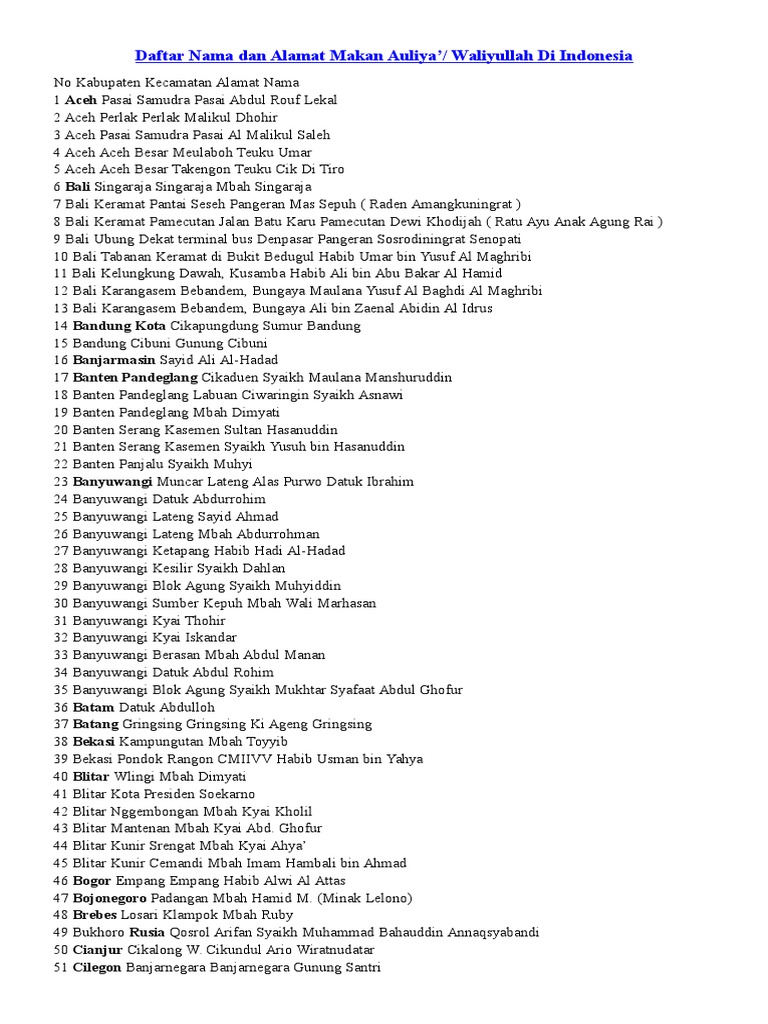 Daftar Nama Dan Alamat Makan Auliya Doc