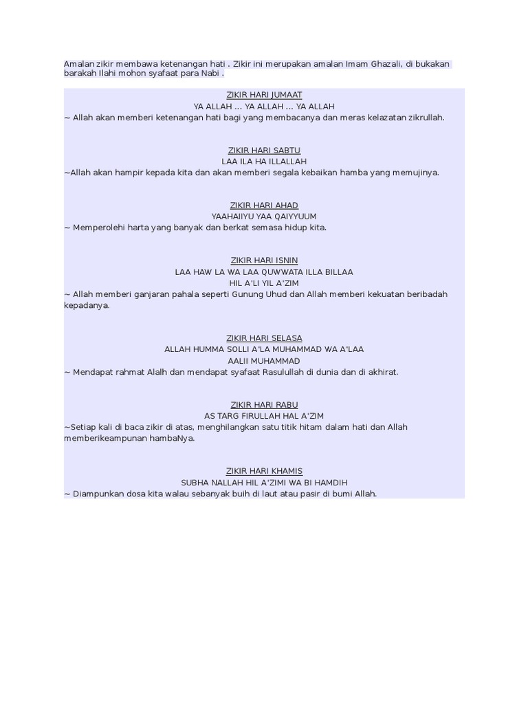 Zikir Harian Isnin Hingga Ahad Amalan Imam Al Ghazali Aliff Co