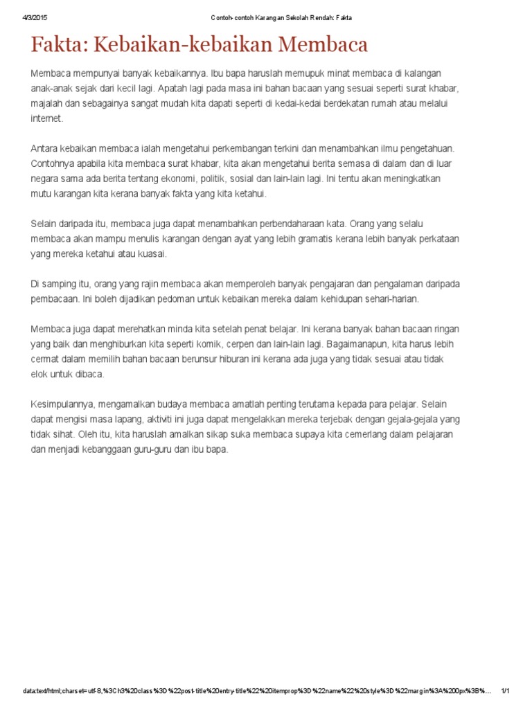 Contoh Contoh Karangan Sekolah Rendah Fakta Kebaikan Membaca