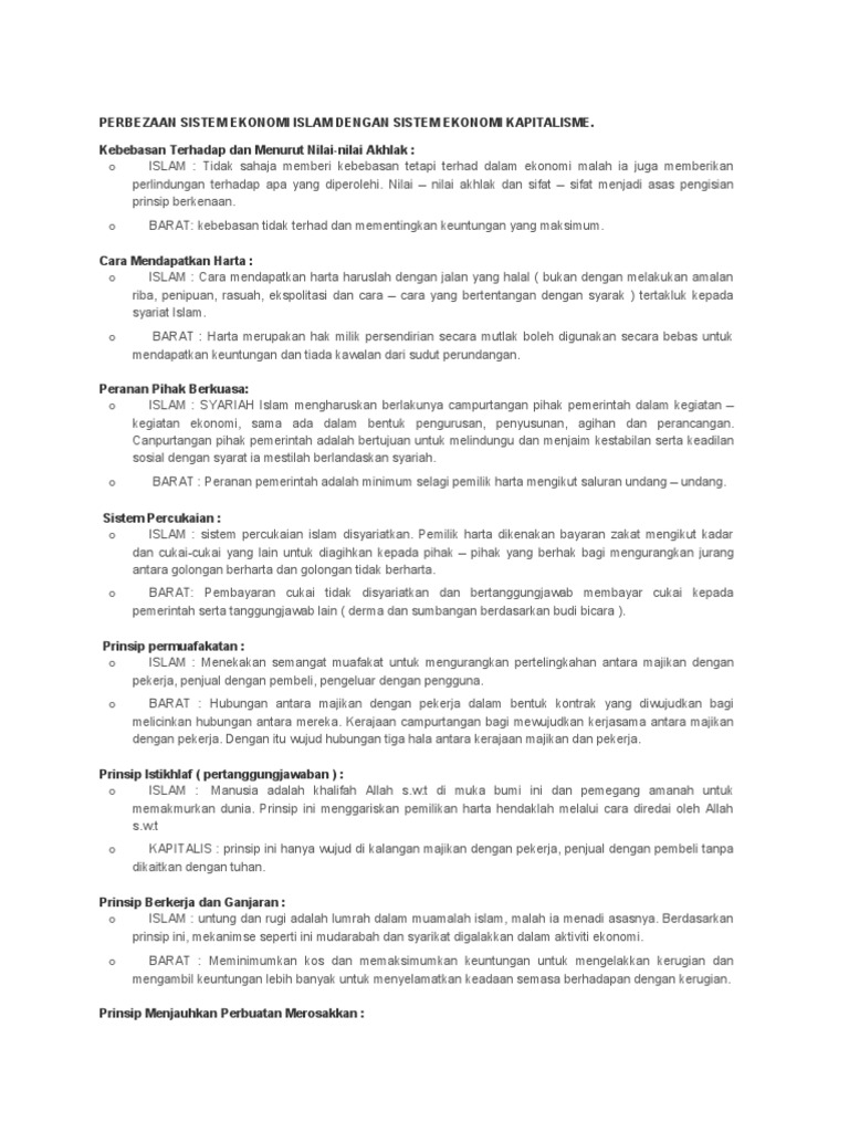 Perbezaan Sistem Ekonomi Islam Dengan Sistem Ekonomi Kapitalisme