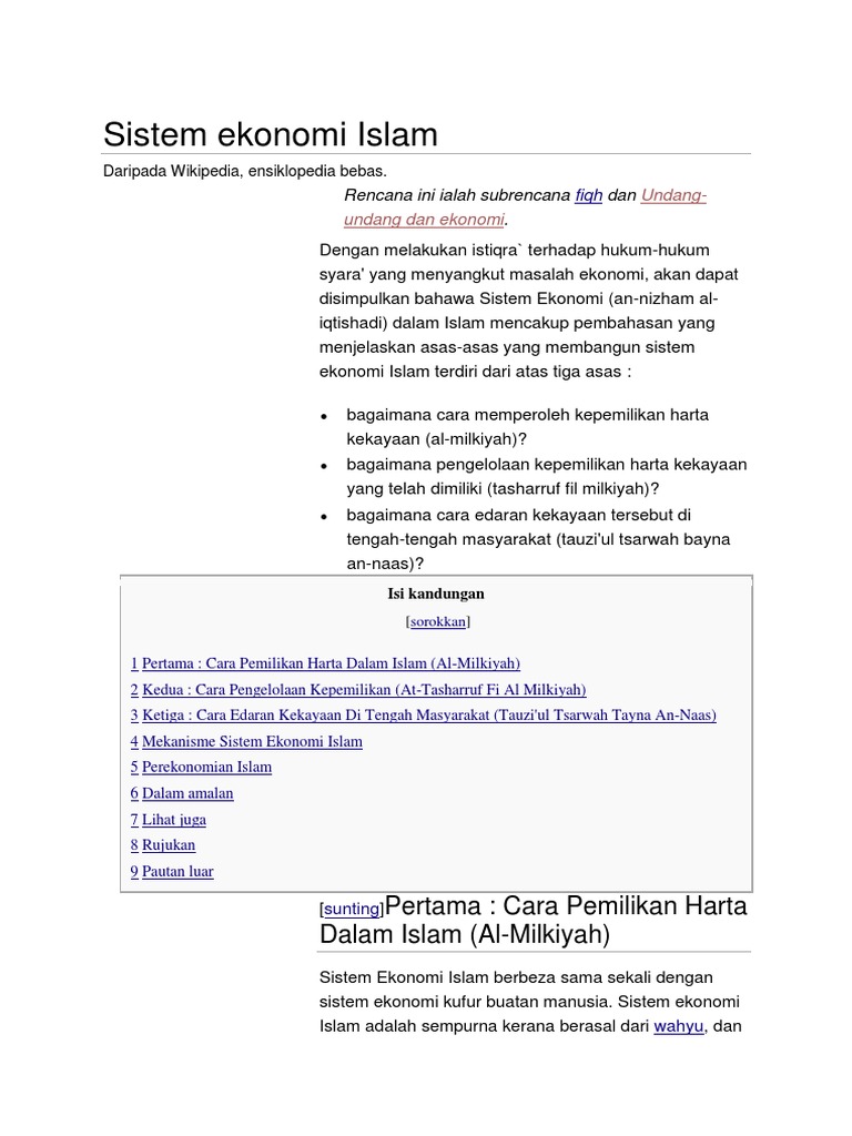 Cara pemilikan harta dalam islam al milkiyah sistem ekonomi islam berbeza sama sekali dengan sistem ekonomi kufur buatan manusia. Prinsip ekonomi islam br 15. Tahap kesuburan pada masa awal islam kegiatan kegiatanekonomi terbatas dan tenpusat kepada persoalan penternakan dan perniagaan.
