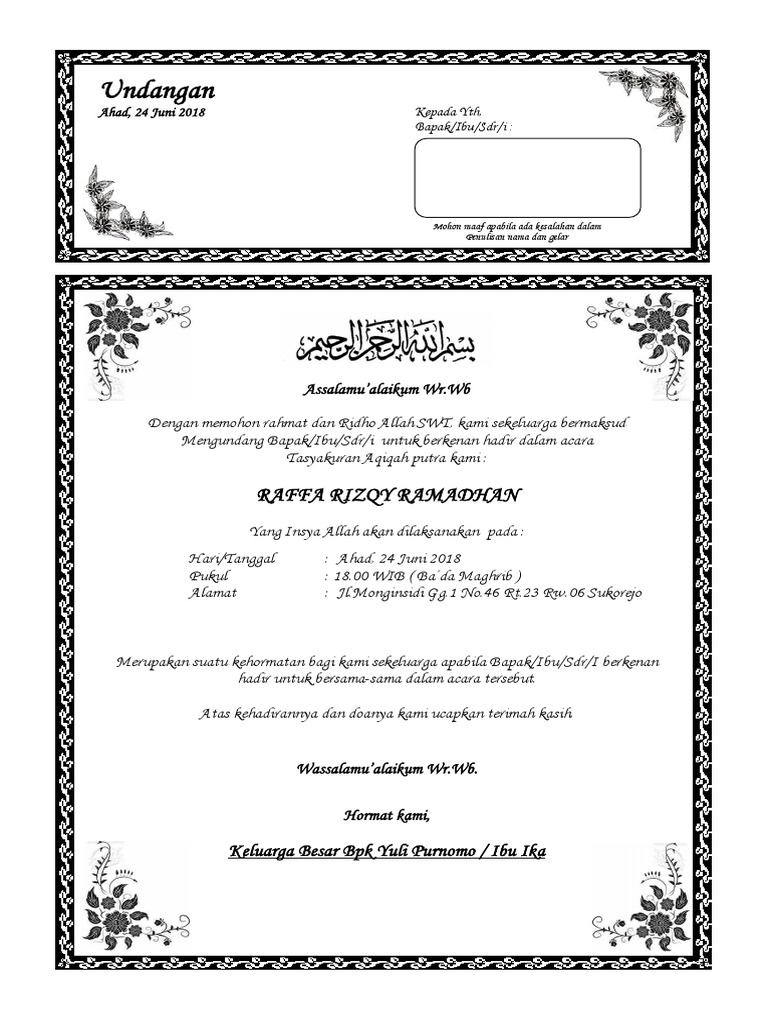 Contoh Undangan Aqiqah Anak Sederhana Unik Kreatif Dalam Format Word Dan Pdf Yang Bisa Diedit Dan Disebarkan Lewat Whatsapp Salam Tekno