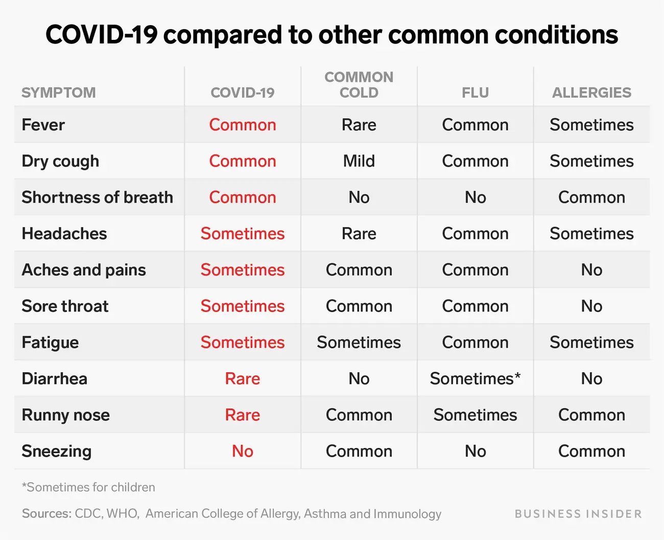 Business Insider On Twitter The Flu Common Cold Allergies And Covid 19 The Disease Associated With The New Coronavirus Have Similar Symptoms This Chart Shows How Covid 19 Symptoms Compare To Those