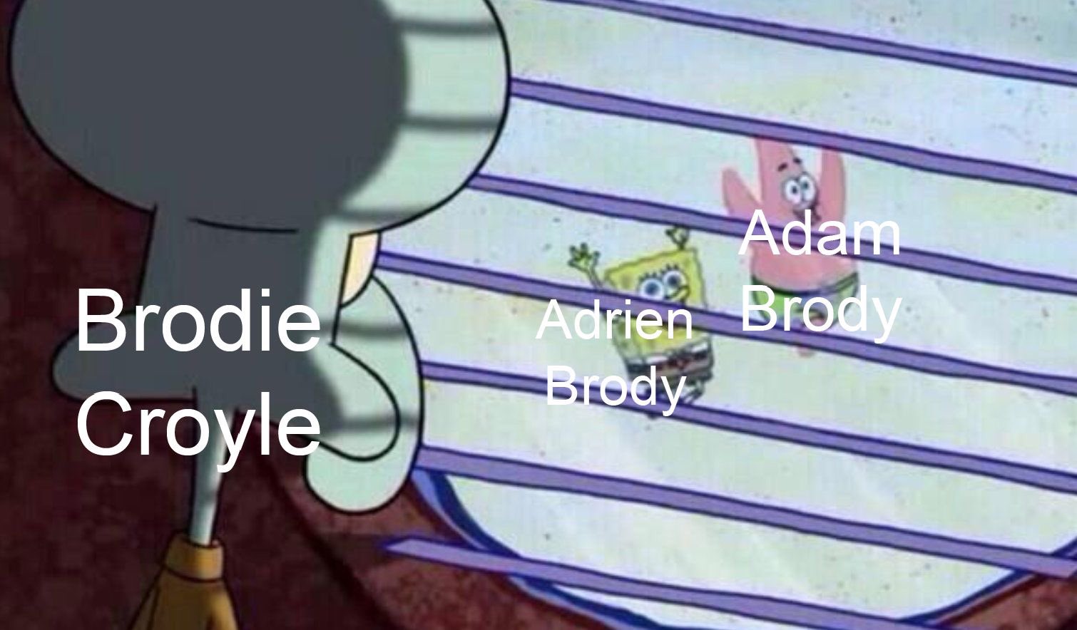 Unofficial Aron Baynes Fan Club On Twitter Using The Spongebob Meme Template Brodie Croyle Squidward Is Watching Adrien Brody Spongebob And Adam Brody Patrick Compete In March Mabness It S Funny Because They